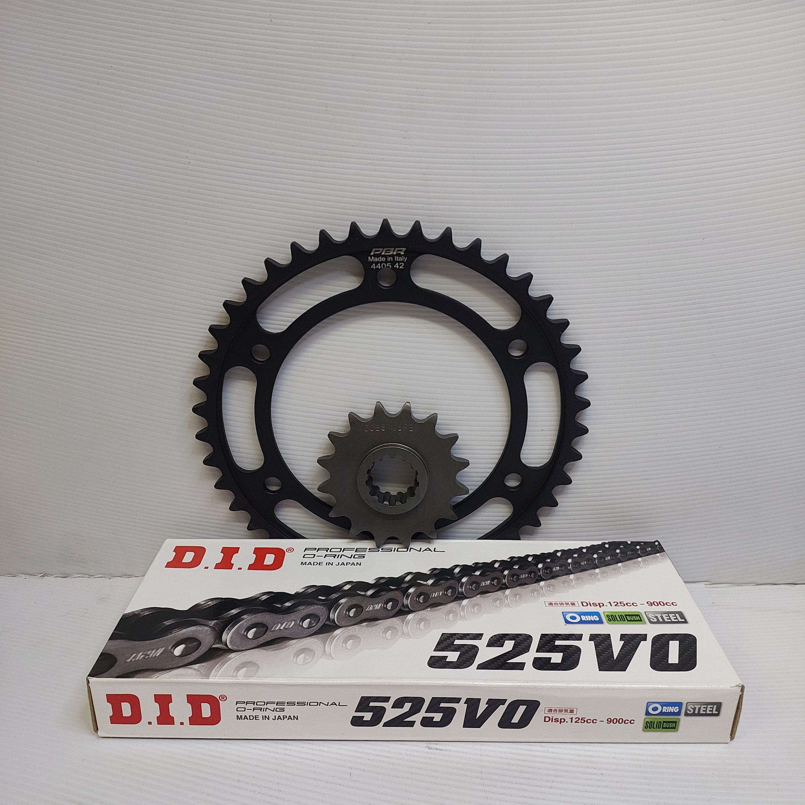 Top quality front and rear sprockets from JT and PBR matched with top quality Japanese brand DID O’ring chain. All schematics refrenced are for JT sprockets but you could receive either PBR or JT sprockets in this kit. All sprockets supplied are direct replacements for the original sprockets with the same pitch and same amount of teeth as originally fitted to the bike.