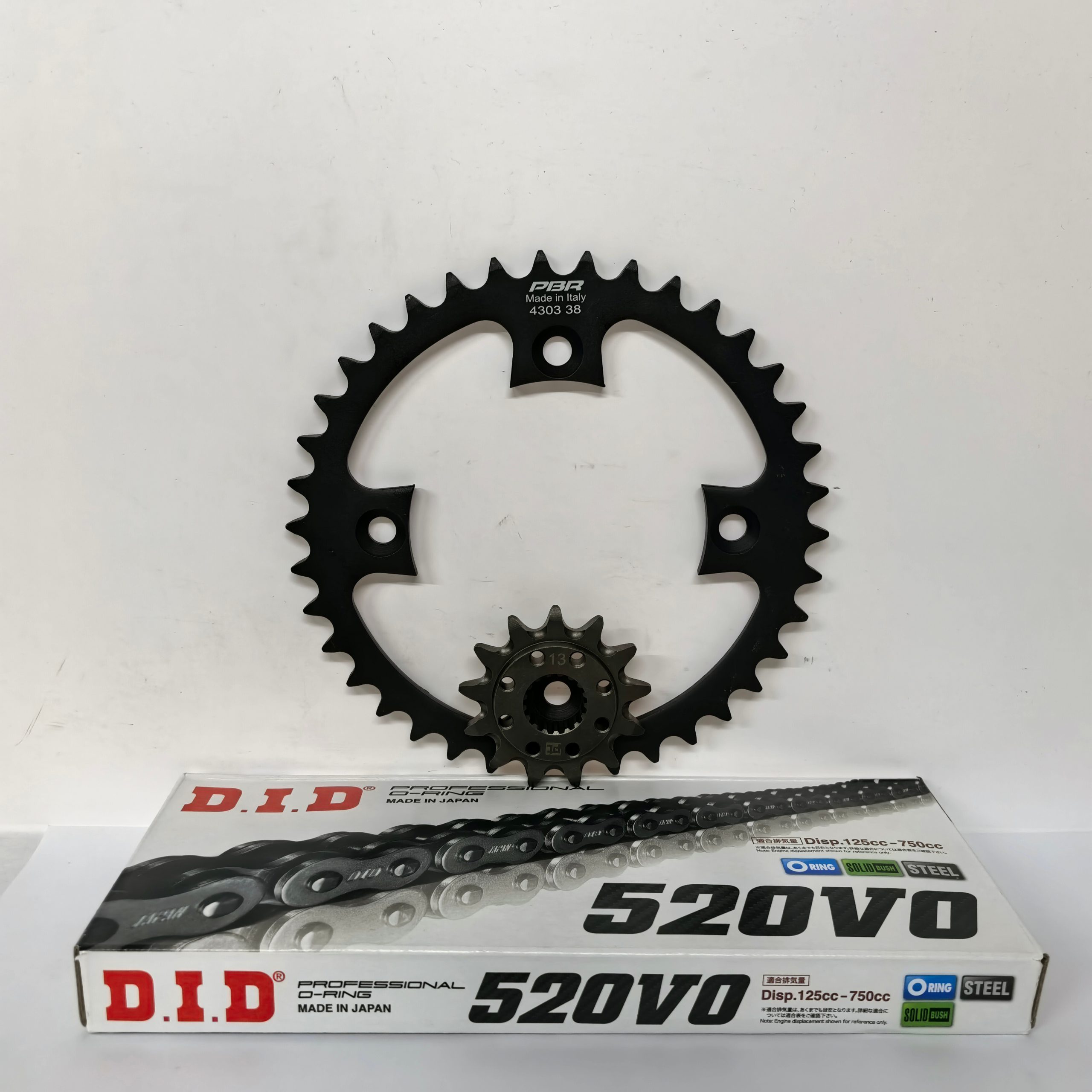 Top quality front and rear sprockets from Airtime, Emgo and JT matched with a top quality Japanese brand DID 520 VO O’ring chain