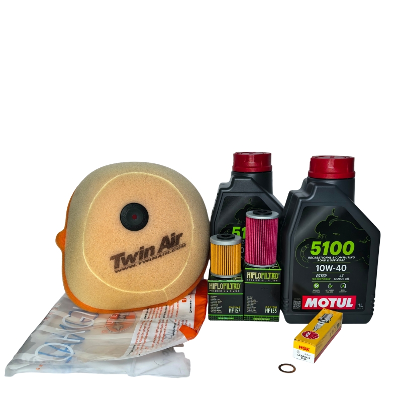 All our service kits are built with the best quality aftermarket components money can buy like Hiflo Filtro and Mahle oil filters, Hiflo Filtro and Twin Air air filters, Bel Ray and Motul synthetic multi-grade lubricants and NGK spark plugs. All OEM equivalent replacement parts that fit first time guaranteed!!!