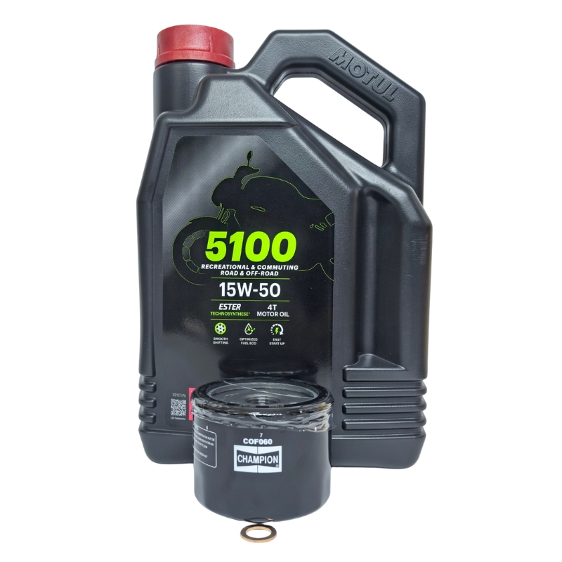 4 litres Motul 5100 15W50 Semi Synthetic oil, 1 x copper sump plug washer
