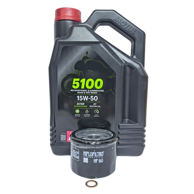 4 litres Motul 5100 15W50 oil, 1 x copper sump plug washer